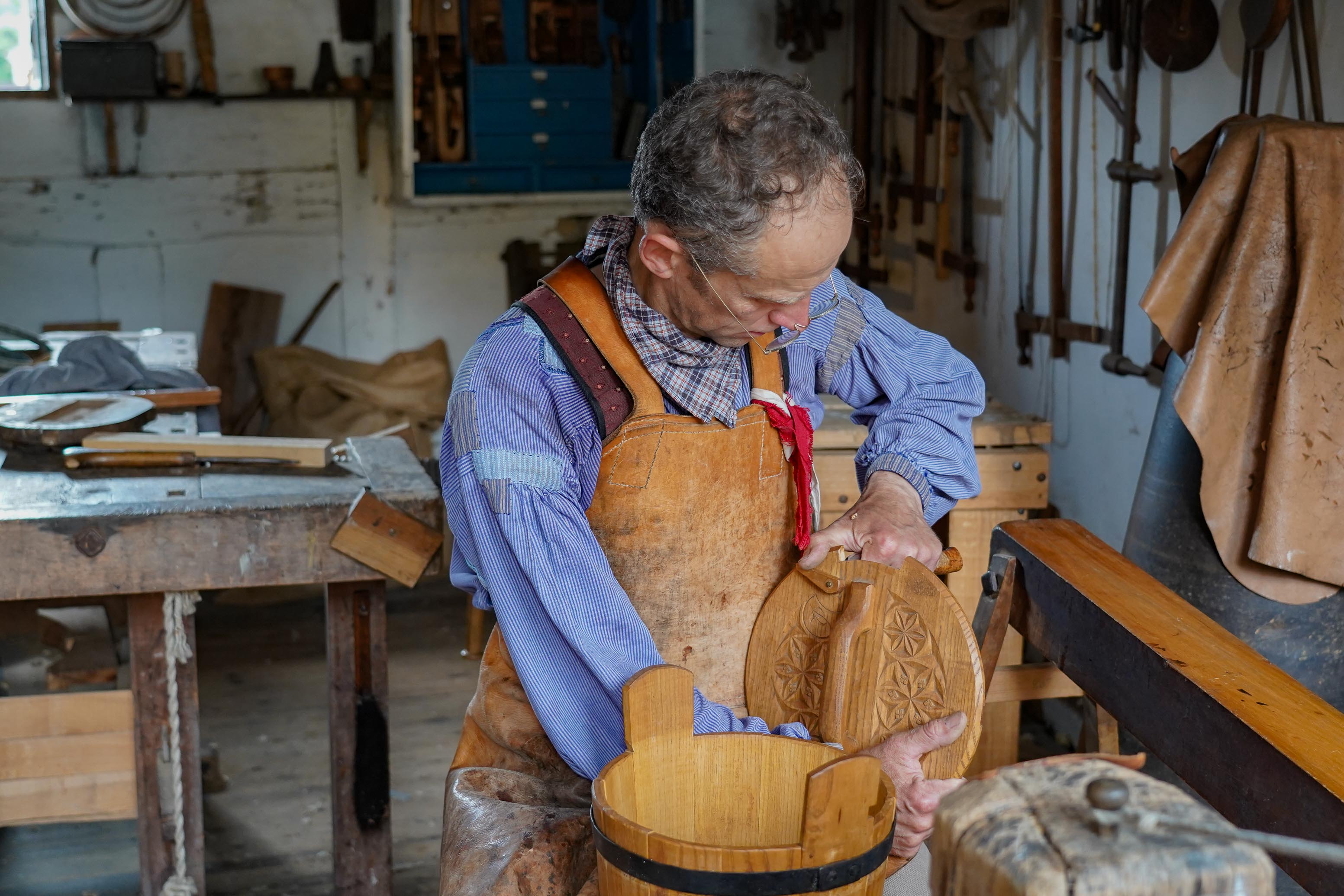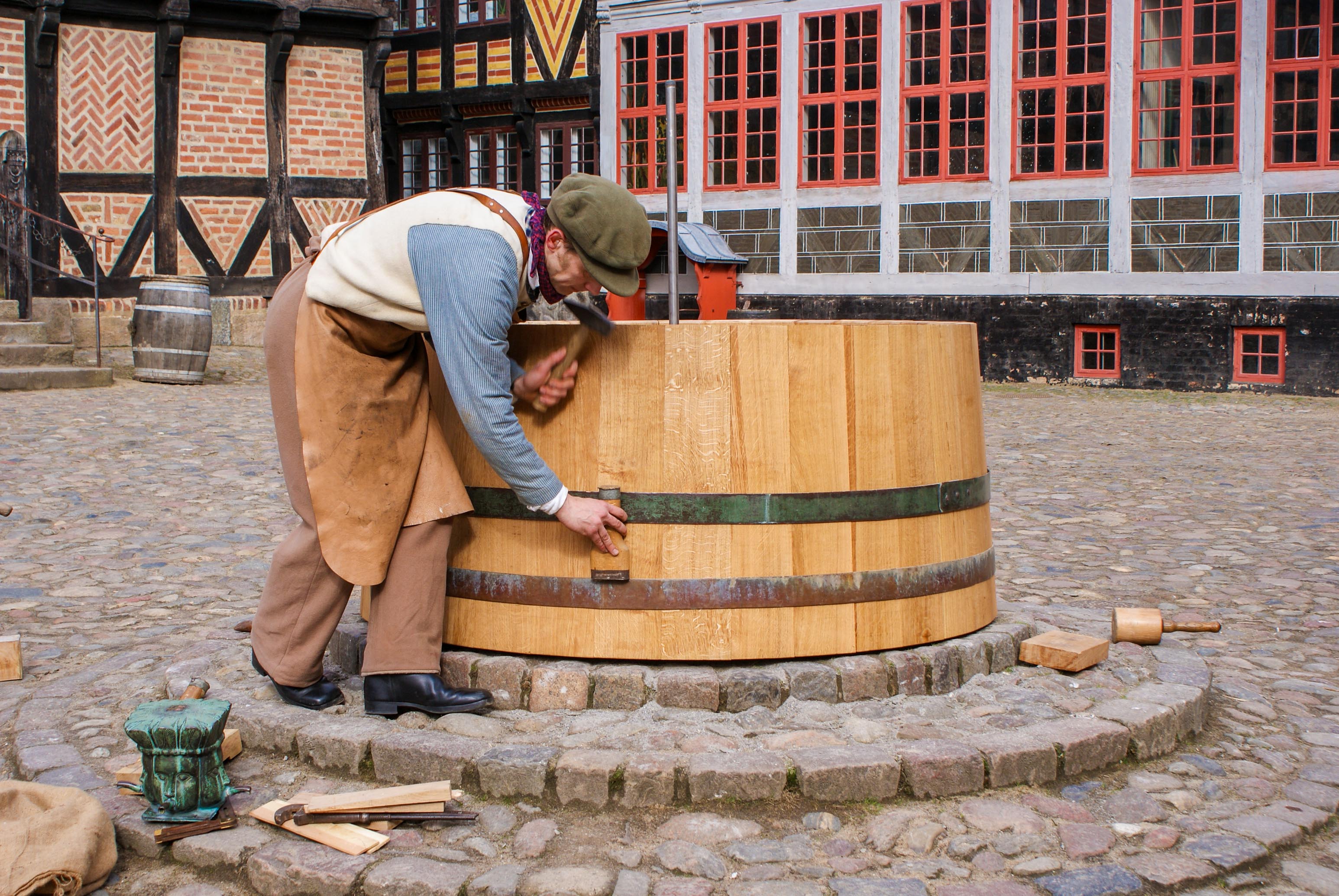 I Den Gamle By praktiseres bødkerfaget, som har været en central del af både landbrug og industri i flere hundrede år.