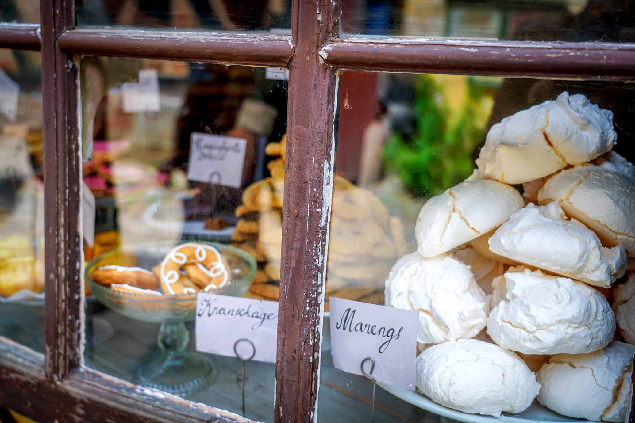 Alt imens du beslutter dig for, hvilken eller hvilke kager og brød, du har lyst til, fortæller bagerjomfruen om historien bag. Al bagværk bages nemlig i museets eget bageri efter opskrifter, der er over 100 år gamle. Gå ikke glip af de sprøde vaniljekranse, som er populære året rundt eller de lækre hindbærbrød, som glæder mange af vores gæster.