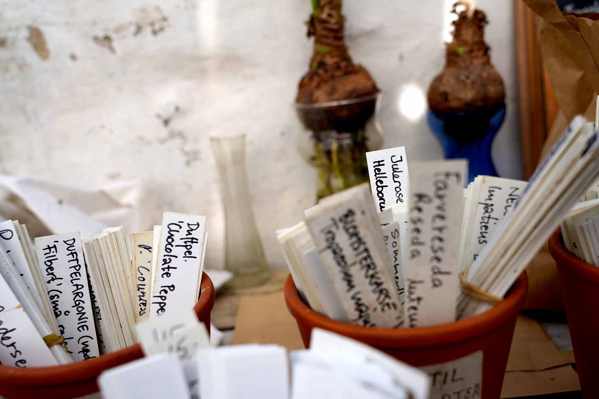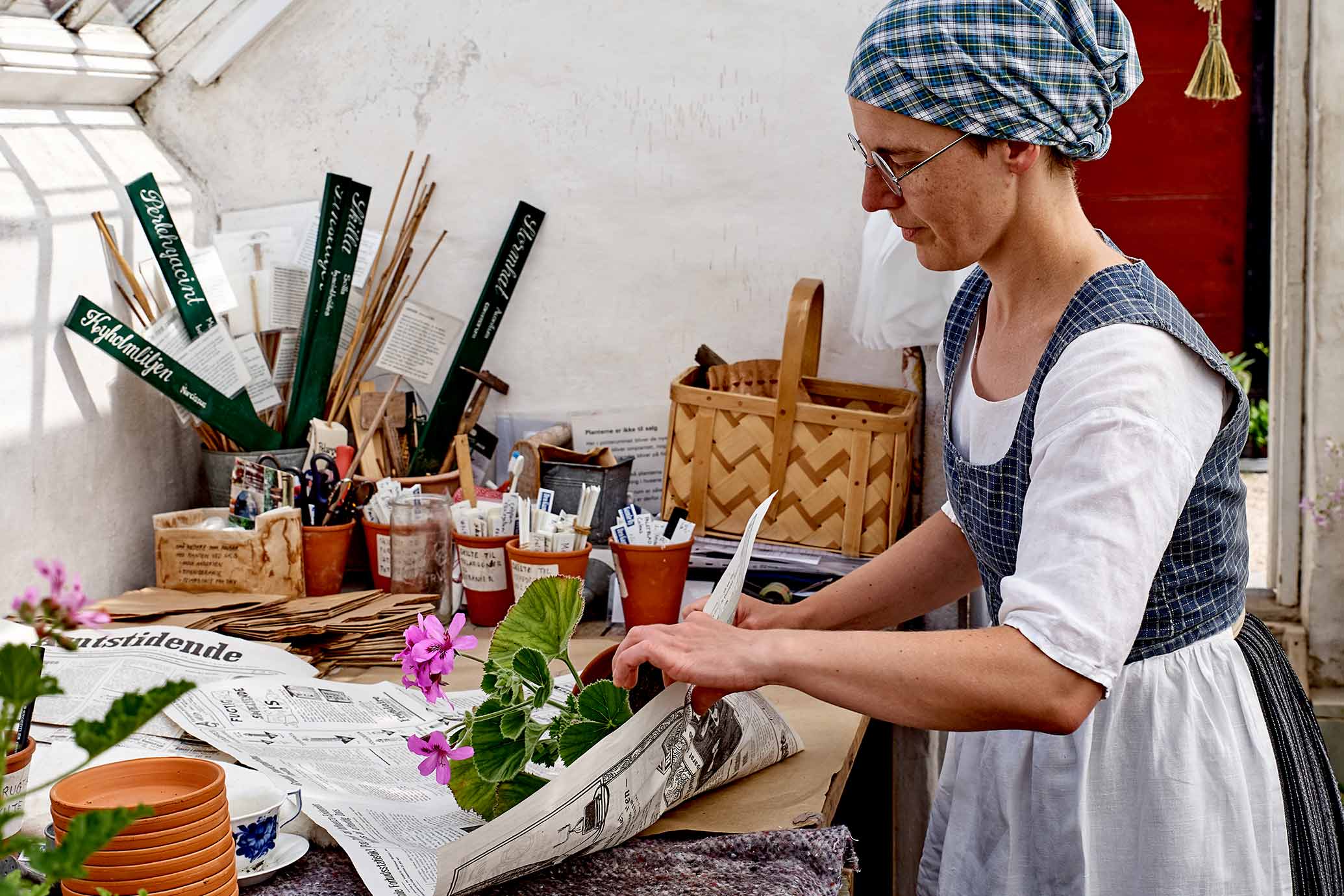 1800-tallets potteplanter kom fra subtropiske egne, og trivedes i vindueskarmene i datidens hjem. Temperaturudsvingene var store bag det enkelte lag glas og kakkelovnsvarmen var tør. Der var varmt om dagen og køligt om natten, når ilden brændte ud.