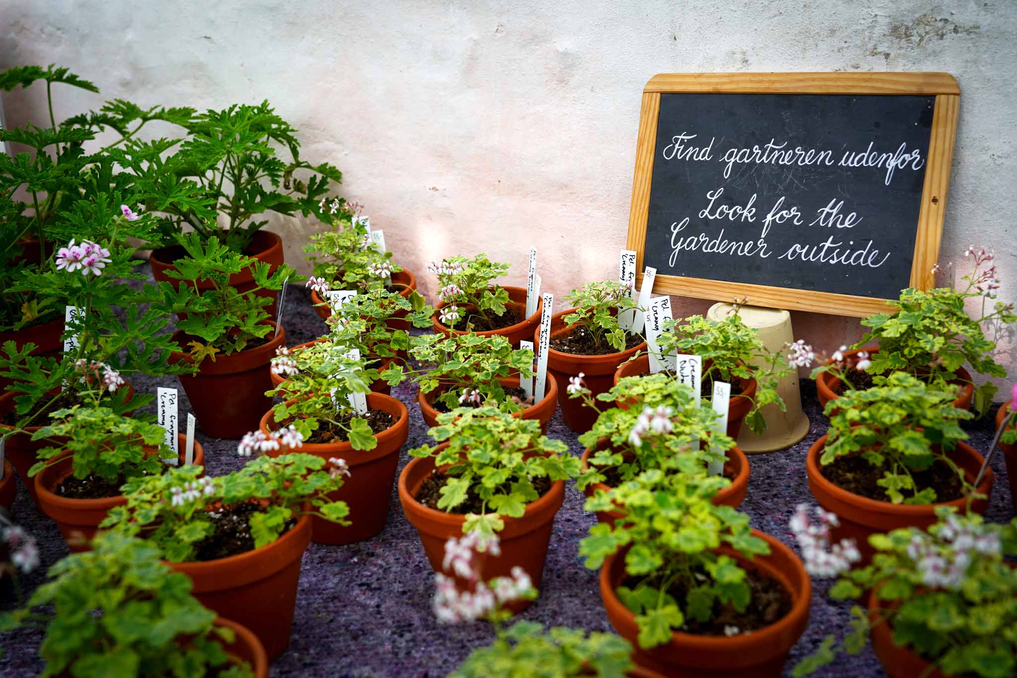 Paradedrivhuset huser en af Danmarks største samlinger af duftgeranier. Hver sort har sin duft, der kan minde om både abrikos, citron, chokolade, pebermynte, muskat, kanel, kamfer, kokos og hasselnødder.