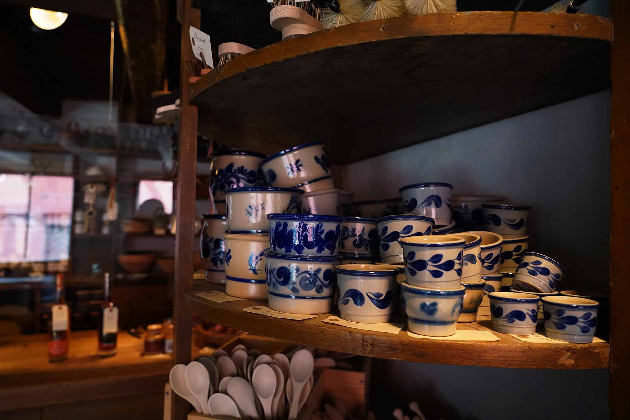 I bønderstuen ved siden af butikken kunne bønderne få varmen, en bid brød og en dram. Stuen fungerede som venteværelse for de mange, der skulle tale med købmanden om handel eller pengerådgivning.