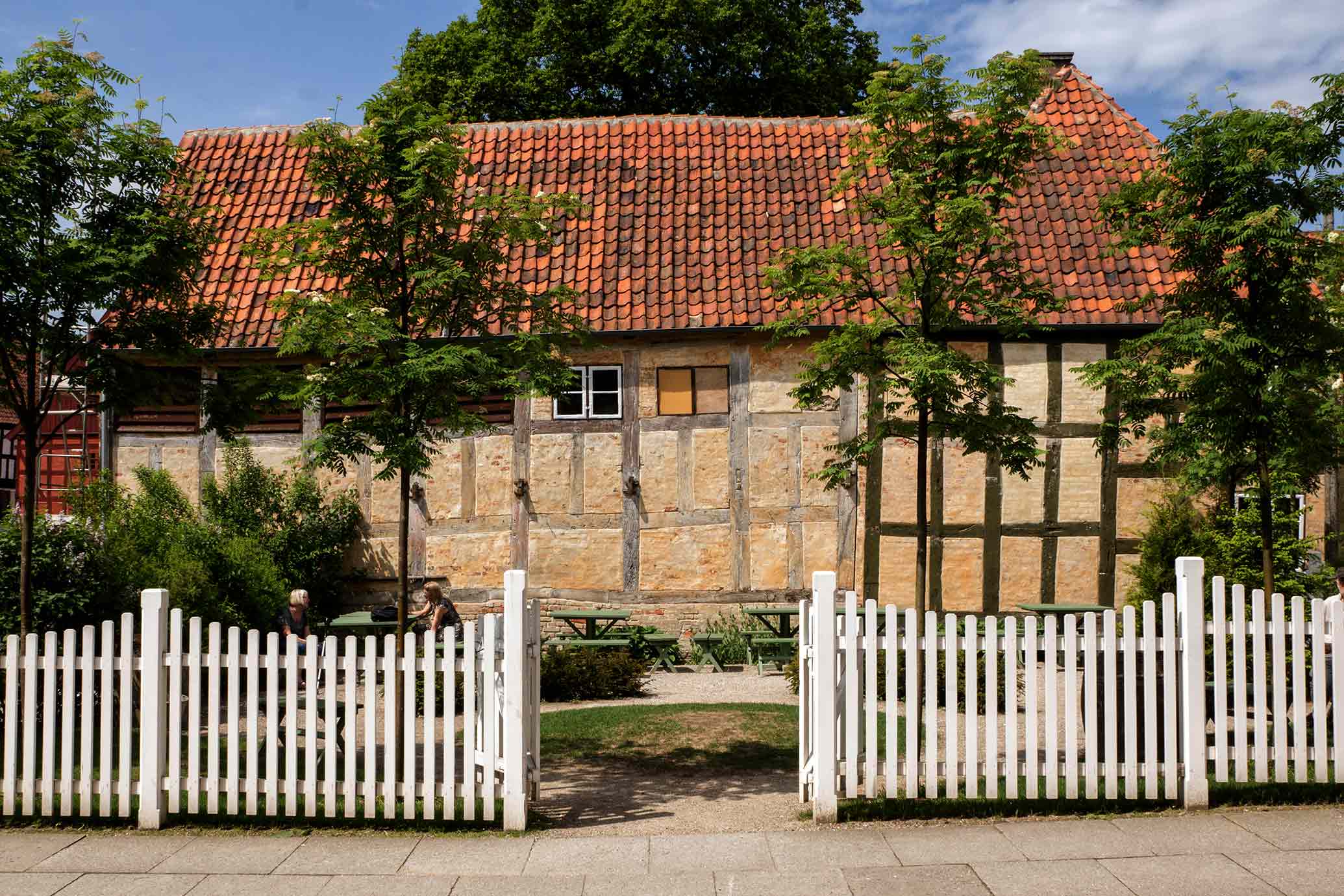 Mindre anlæg blev typisk anlagt på byernes offentlige grunde og var åbne for byens borgere. Her i Den Gamle By er anlægget åbent for at vores gæster kan nyde, deres medbragte mad eller kaffen og kagen fra Konditoriet overfor.