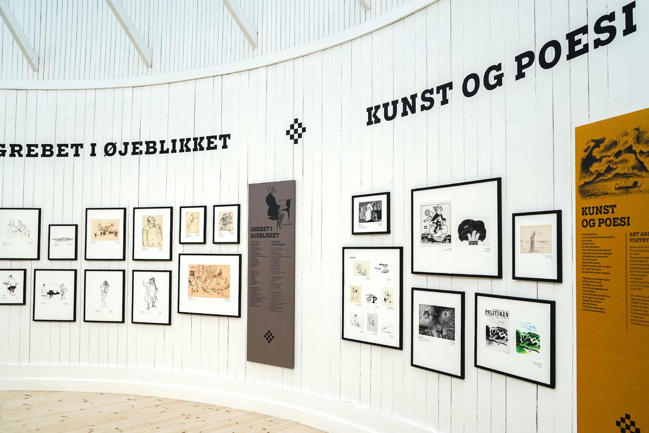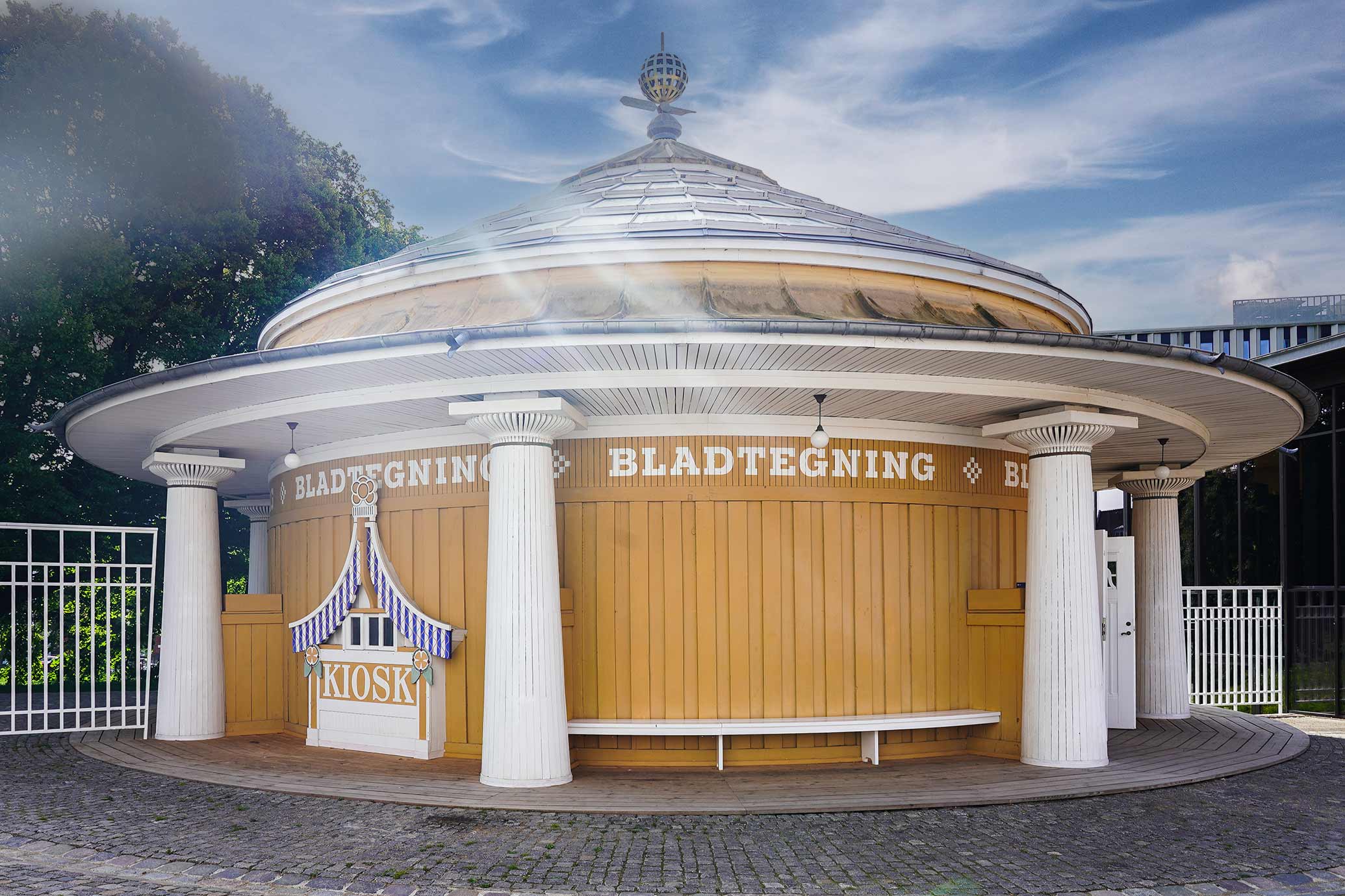 Museet for Dansk Bladtegning finder du i den gule, cirkulære pavillon, som er tegnet af arkitekt Anton Rosen til Landsudstillingen i Aarhus i 1909 og genopført i Den Gamle By i 2009.Her er udstillet 98 særligt udvalgte bladtegninger, der fortæller 175 års bladtegningshistorie under overskrifterne ”Latteren som middel”, ”Store begivenheder”, ”Grebet i øjeblikket”, ”Offentlige personer” og ”Kunst og poesi”.Kom helt tæt på tegnere som blandt andre Storm P, Roald Als, Claus Seidel, Bo Bojesen og Jens Julius Hansen og få et historisk indblik i bladtegningens mange formål og facetter.