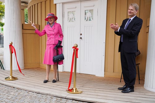Sådan lød det fra Hendes Majestæt Dronningen under dagens åbning af Museet for Dansk Bladtegning i Den Gamle By.