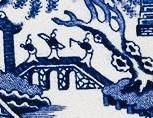 Museumsfolk bliver ofte præsenteret for dele fra diverse spisestel dekoreret med det samme motiv i en klar blå farve: Et typisk kinesisk landskab med bygninger, træer, vandløb, en bro, en båd og to turtelduer. Motivet kaldes Blue Willows Til dette motiv er knyttet eventyret om den kinesiske mandarins datter Koong-See og faderens sekretær Siang-Lee. Koong-See og Siang-Lee forelskede sig aldeles i hinanden. Forholdet måtte holdes hemmeligt, da faderen kun kunne misbillige en forbindelse mellem en rig mandarindatter og en fattig sekretær.