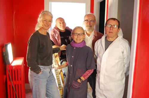 Den Gamle By har indrettet sit 70’er kvarter med hjælp fra forskellige personer, som har delt deres 70’er liv med museet. Her er fem tidligere kollektivister ved at male museets kommende ræve røde kollektiv, på samme måde som de gjorde det dengang de boede sammen i 70’erne. Deres anstrengelser kan ses fra 20. juni 2013.