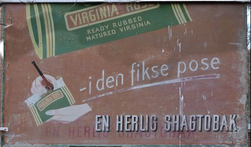 Så selvfølgelig skal Den Gamle By også have en tobaksreklame, og den bliver ganske markant, fordi den får en permanent plads i selve bybilledet som en kæmpe gavlreklame. Men det bliver ikke et cigaretmærke, som løber med opmærksomheden. Det er pibetobakken Virginia Rose, der bliver eksponeret i en størrelse på 8×10 meter på gavlen på bygningen, hvor Pouls Radio har forretning.