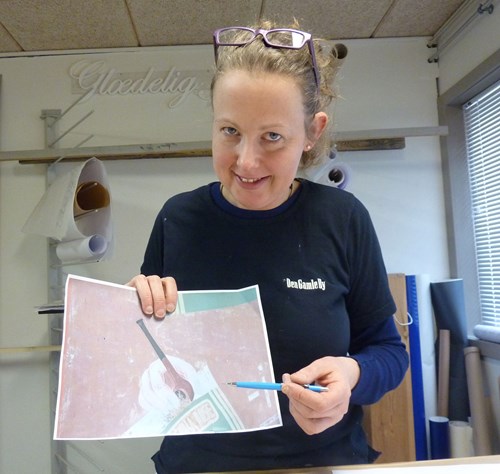 Den største udfordring for malersvend Anne Mette Sørensen er at få overført fotografiet af det kæmpemæssige maleri til papir i størrelse 1:1.