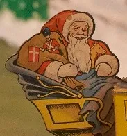 Danmark var besat af Tyskland, så julemanden bekender med livgardisten og det lille Dannebrogsflag rent kulør.