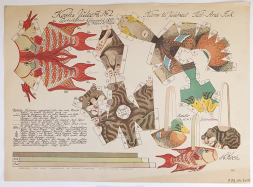 Den Gamle Bys samling af julegenstande til belysning af julens historie i Danmark rummer ret så mange klippeark. Her er både hjerter og kræmmerhuse, kravlenisser og stjerner. Blandt de mere særprægede klippeark er fire hele klippeark. Klippearkene er designet af arkitekt Hans Henrik Koch og udgivet i 1918. Siden da er arkene gentagne gange blevet genoptrykt.