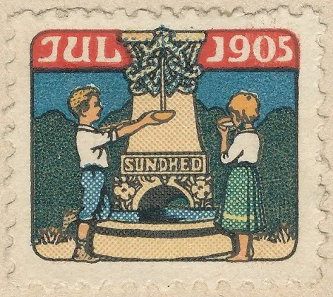 Selve ideen bag julemærket kommer tydeligt til udtryk i det andet julemærke fra 1905. Her er motivet en dreng og en pige stående ved en fontæne med rislende vand. Drengen er netop ved at fylde sin skål, mens pigen allerede drikker af sin. Forneden er fontænen mærket SUNDHED. Formålet med julemærkerne er her tydeligt: Sundere børn! Motivet er tegnet af H. Westergaard. Oplag 5 mio. Indtægt 71.965 kr.