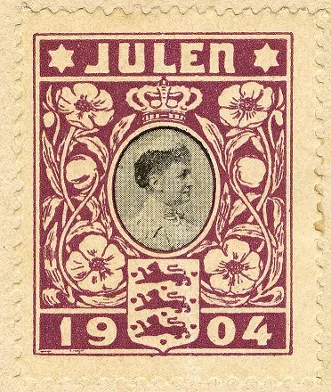 Verdens første julemærke blev præsenteret for offentligheden den 16. november 1904. Motivet var en fotografisk gengivelse af Dronning Louise, Christian IX’s hustru, død i 1898. Hun var prinsesse af Hessen-Kassel, før hun i 1842 ægtede den senere Kong Christian IX.