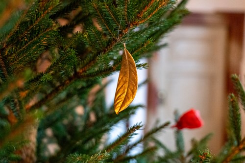 Juletræerne, som skal fortælle historien om Lehmanns juletræ fra 1811, pynter vi derfor med papirsroser, kager, sukkergodt i form af karameller, lys, æbler og nødder. Tidligere udspillede historien sig omkring et mindre træ på et bord, men med familiens beretning om et loftshøjt træ kan vi nu fortælle den med et stort træ. Ved Aarhus Møller har vi sat stiger op, så hvis du er lige så nysgerrig som Martin Lehmanns naboer, kan du klatre op og se juletræet gennem vinduet.