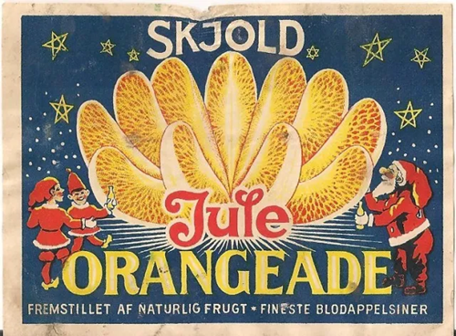 Orangeade fremstillet af naturlig frugt, fineste blodappelsiner. Fra Mineralvandsfabrikken Skjold i Holstebro (1907- ), men også i Nykøbing Sjælland lå en mineralvandsfabrik med dette navn