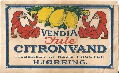 Citronvand tilberedt af rene frugter. Mineralvandsfabrikken Vendia var aktiv mellem 1883-1964 i Hjørring