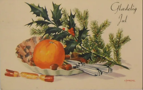 De fleste af vore juletraditioner har deres rod i det tyske område. Der er dog undtagelser. Julemærket, juleplatten og det flettede julehjerte er således ægte danske bidrag til julens historie i ind- og udland. Den flettede halmbuk stammer oprindeligt fra Sverige, og kom her til landet som en invasiv art omkring eller kort efter 1920. Fra England har vi hentet julekalkunen, julekortet, kristtornen og misteltenen, samt de knallerter, som man af og til stadig kan finde på danske juletræer.
