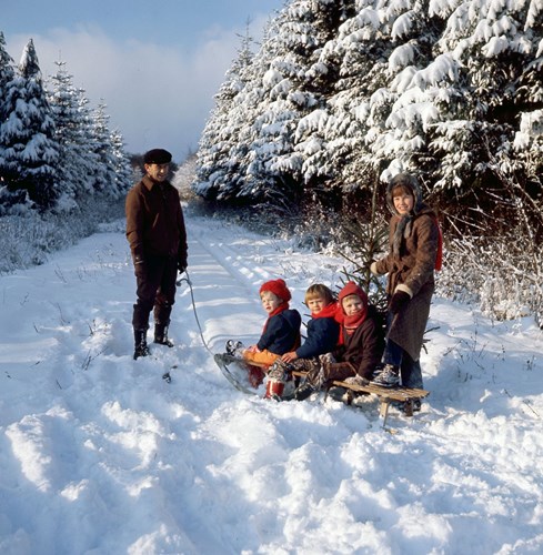 Juletræet kunne også hentes hjem med alternative transportmidler i december 1973. Foto venligst udlånt af Nakskov Lokalhistoriske Arkiv. Fotograf Thomas Hald.