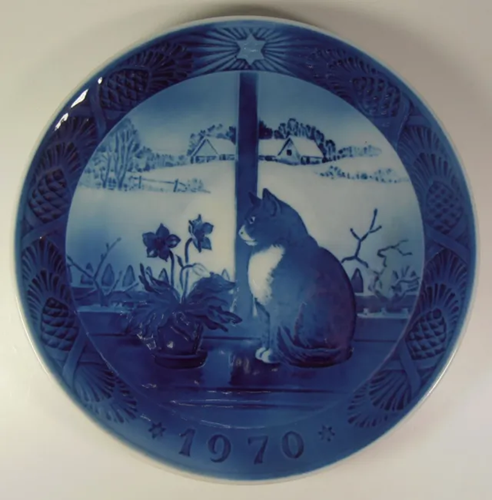 I den lune vindueskarm skuer katten ud over det kolde landskab. Ved dens side står urtepotten med en julerose