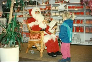 Julemanden i blomsterbutikken Clausen Bellis 1993. Julemandens bevægelser er synkroniseret, så øjenbevægelser og bladren passer til oplæsningen.