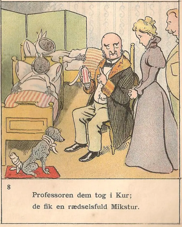Til hæftet Børnenes Juleroser 1899 tegnede han Aarhundredet skydes ud. En Historie i otte Billeder.