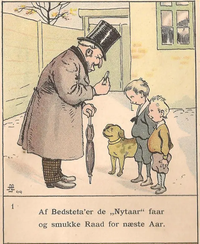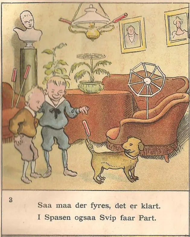 Til slut en løftet pegefinger til bedstefar og de to drenge og hunden Svip: Tænk jer nu grundigt om, og pas så godt på jer selv i aften!