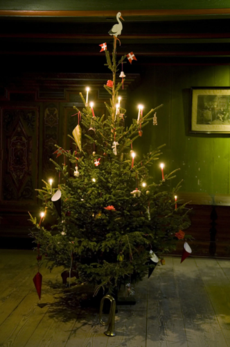 Når vi i Den Gamle By pynter Købmandsgården op til jul, bruger vi andenudgaven af Peters jul som forlæg. Her er der en stork i toppen, som i tredie udgave er blevet til en stjerne. Storken i toppen af træet minder om julen som en fødselsfest. I maleren P.C. Skovgaards familie var det i øvrigt også skik med en stork i toppen af træet i 1860´erne.