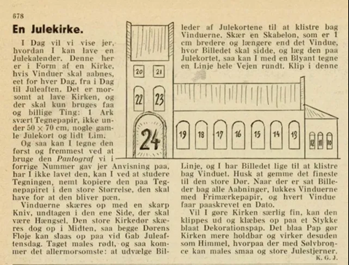 Den ældst kendt danske julekalender med låger er fra 1932