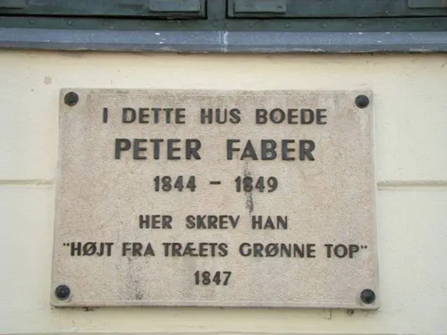 I Højt fra træets grønne top er det værd at dvæle en stund ved de personer, der nævnes i sangen. Hin minderige juleaften den 24. december 1847 fejrede Peter Faber med sin hustru Frantzine Petrine Eibye hos Peter Fabers far, forhenværende smedemester og kongelig plattenslager Rasmus Hjort Faber i Peter Fabers barndomhjem på Gråbrødretorv 21 i København. Peter Faber selv boede i Store Kannikestræde 15, hvor Højt fra træets grønne top da også er skrevet.