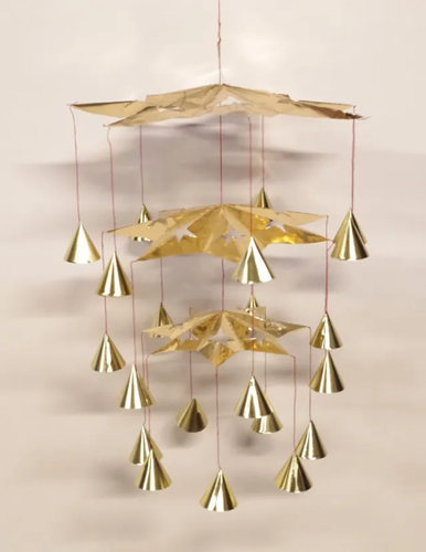 Juleuro af metalfolie fra 1960-erne. Uroen består af tre 7-takkede og let foldede stjerner, den største øverst. Med original æske. Design nr. 105