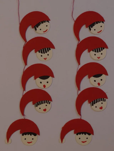 Juleuro fra 1953. Hvert nisseansigter ses med små variationer i udformning hår og mund