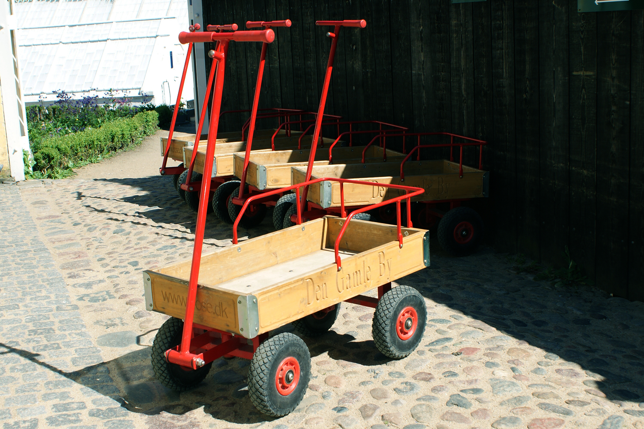 Du kan leje en trækvogn i Informationen. Det koster 50 kroner og udlejes kun mod aflevering af gyldig legitimation eller 100 kroner i depositum.