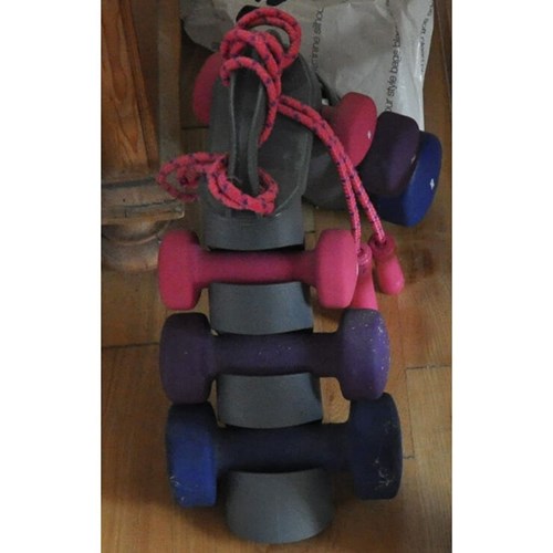 Håndvægtsæt med stativ og sjippetov