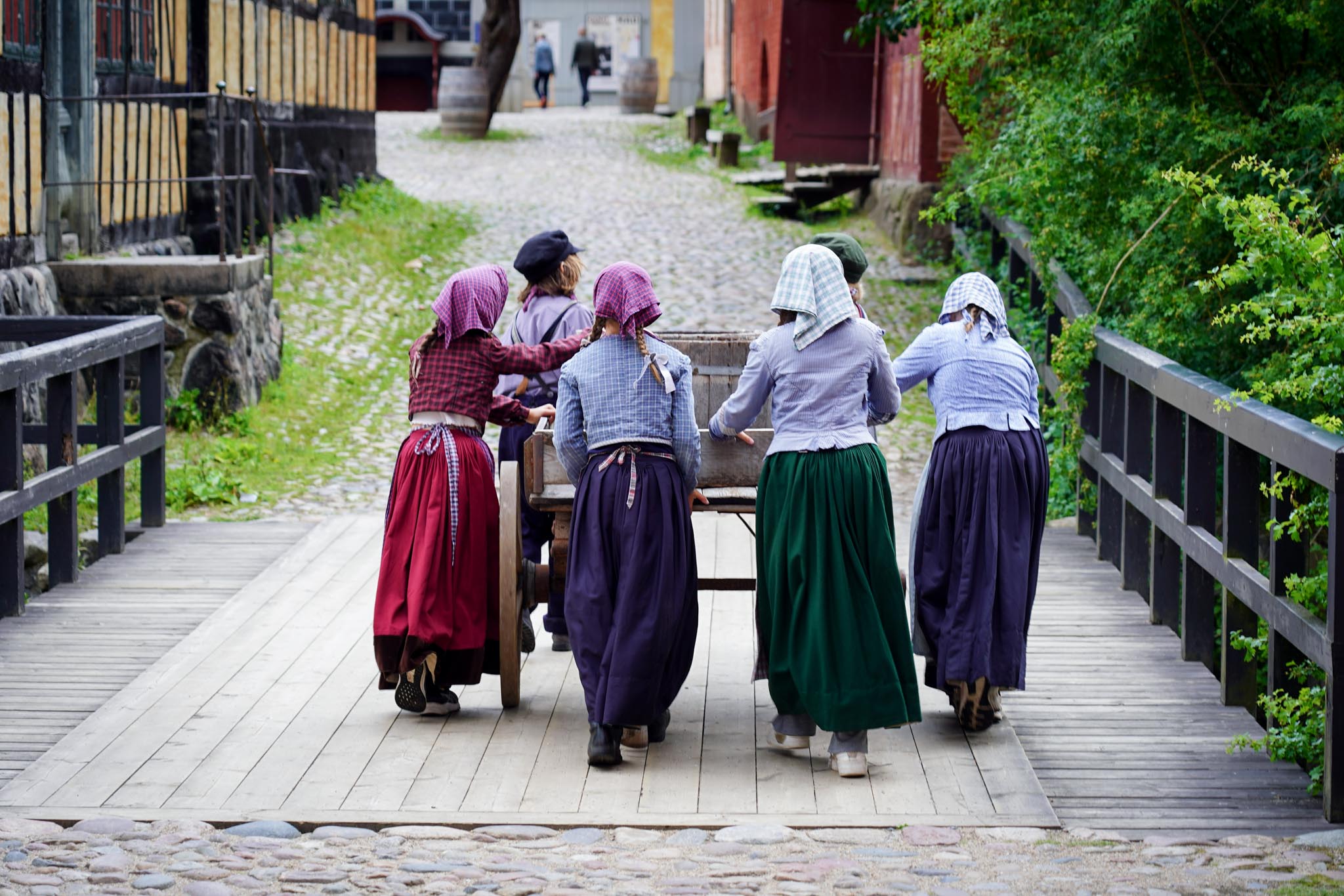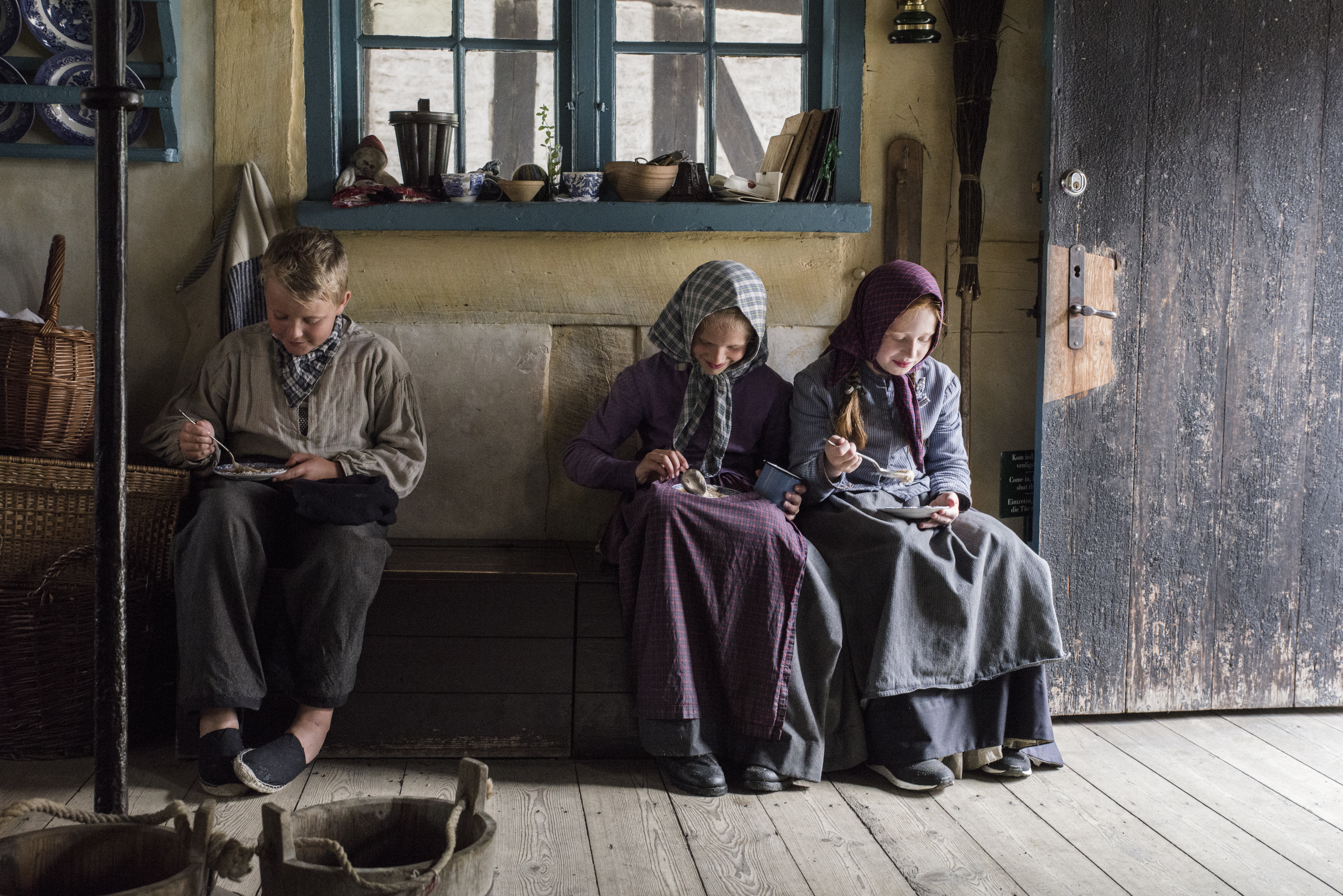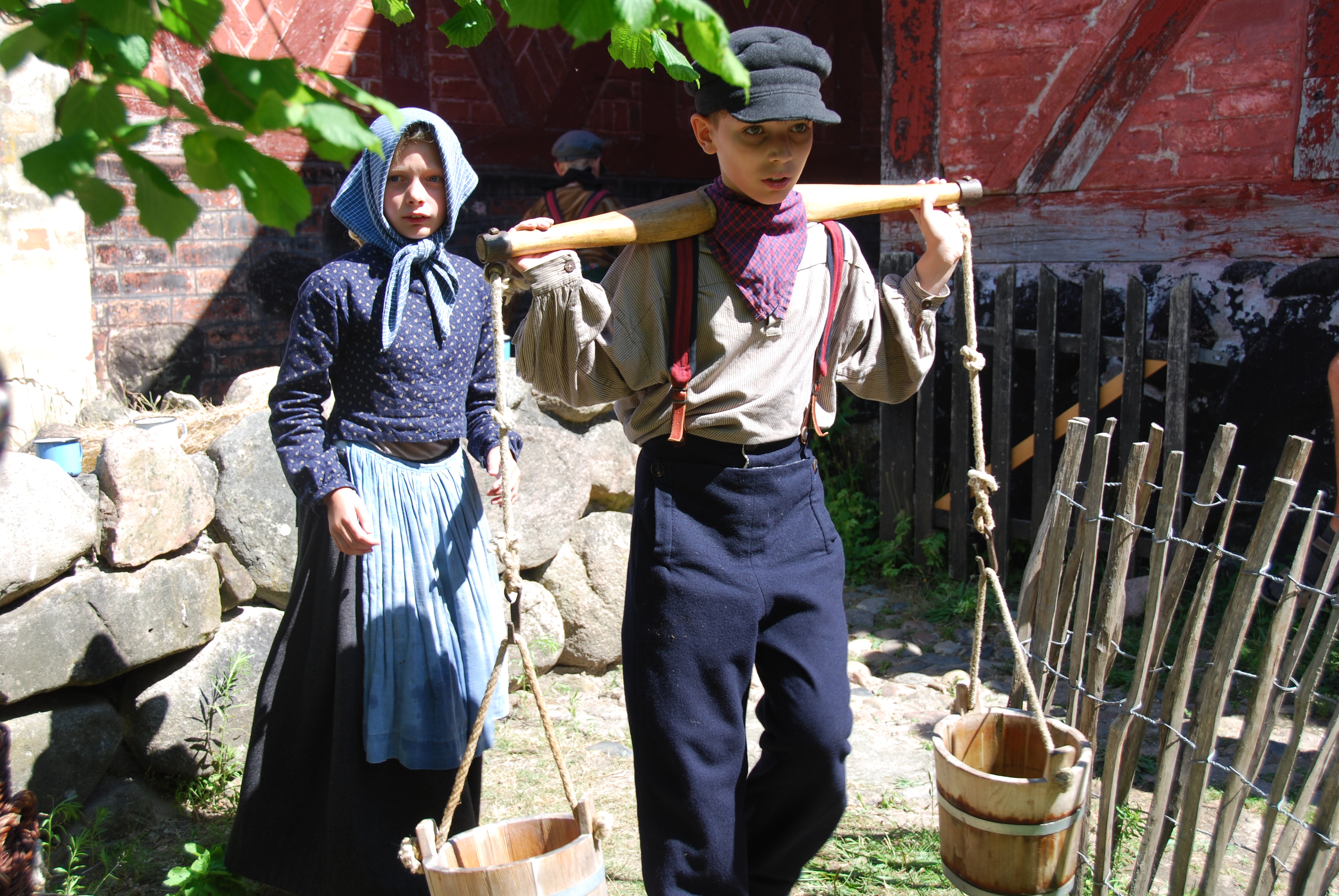 Klassen begiver sig ud på en rejse i tid og rum og transformeres til asylbørn i 1864. Gennem improviseret rollespil oplever børnene på egen krop, hvordan det var at være barn for 150 år siden. Rollespillets tidsrejse ledes af museets undervisere og aktører. For at gøre illusionen nærværende iklædes eleverne historiske dragter og roller. Når alle er omklædt begynder rollespillet, og museets underviser leder børnene tilbage til tiden med hestevogne, hvor hårdt arbejde og kæft, trit og retning var hverdagskost. I Købmandsgården skal asylbørnene arbejde for Madam Svendsen med at stable brænde, hente vand, feje, pudse vinduer og vaske tøj.