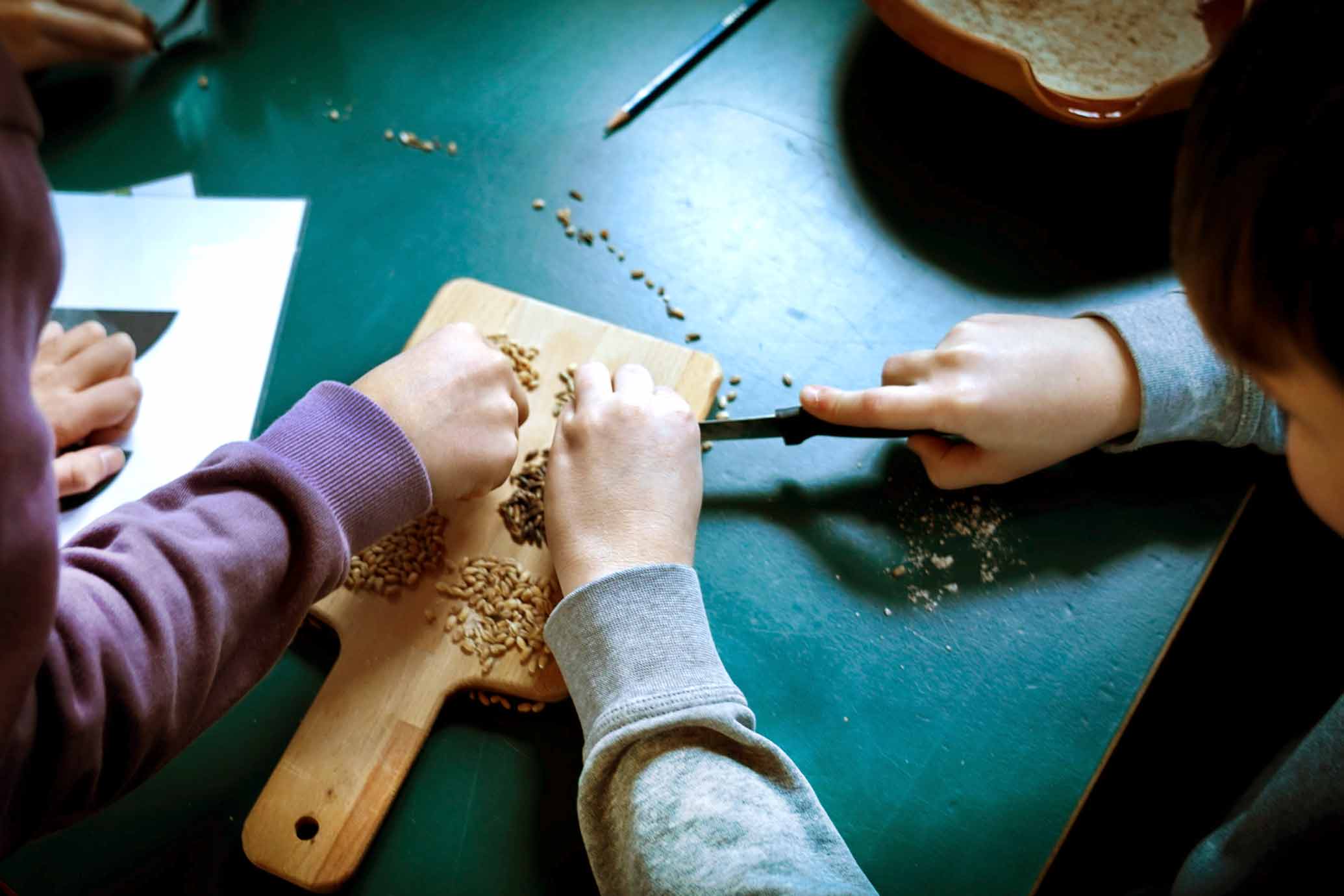 Med dansk madhistorie i fokus, blandes madkundskab og historie i et praktisk undervisningsforløb. Eleverne lærer om korn og korns betydning i danskernes kost gennem tiden. De får lov til at prøve kræfter med at skille kornkerner fra hinanden og male rugkerner til mel på håndkværne.
