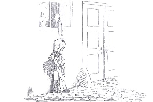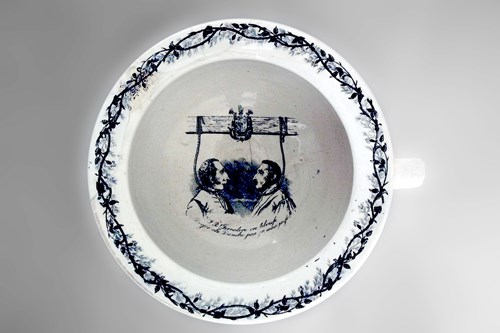 Under skomagerens seng står natpotten klar, så skomageren eller hans kone kunne benytte den i løbet af natten. Natpotte af porcelæn.